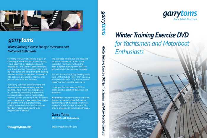 For many years, whilst enjoying a glass of champagne as the sun sets across Torquay, I have observed by boating enthusiast neighbours. This DVD has been developed as a direct result of these observations and reported aches and pains from both boating friends and clients, along with my research into back pain and exercise regimes that provide pain relief and recovery.